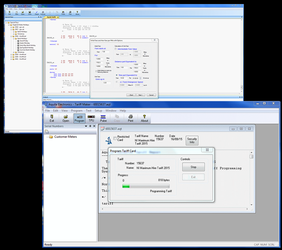 Software is provided to dealers to allow them to write their own tariff programmes. You have the option of programming tariffs yourself using the Tariff Programming software, or getting us to program tariffs for you, and downloading the tariff program from Aquila On-Line.